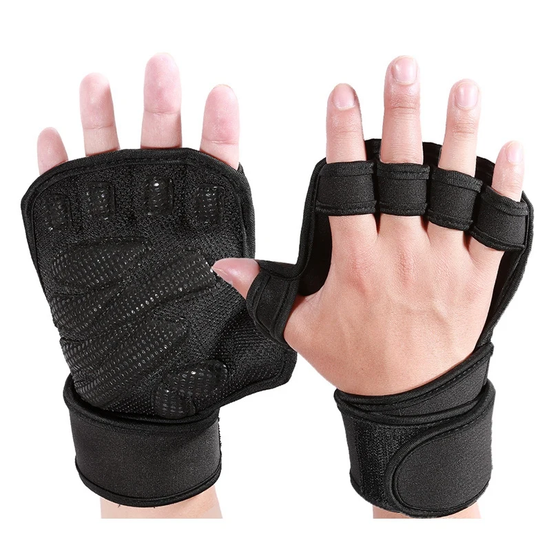 Half Finger Gym Fitness Gloves Hand Palm Protector with Wrist Wrap Support Cross Fit Workout Power