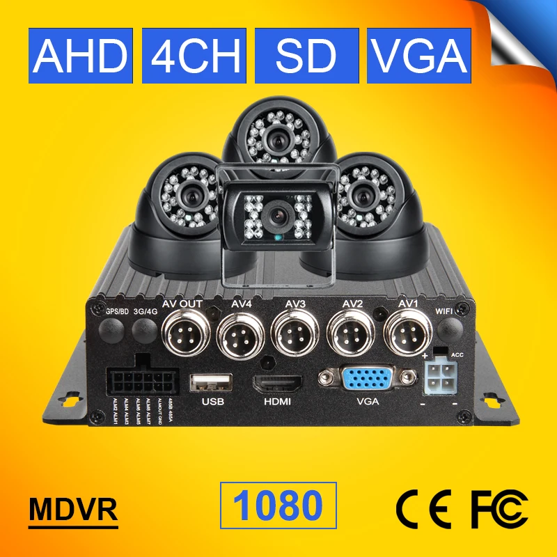 New ahd 1080 car mobile dvr kits4channel viedo/audio input sd card mdvr car video recorder with 4pc