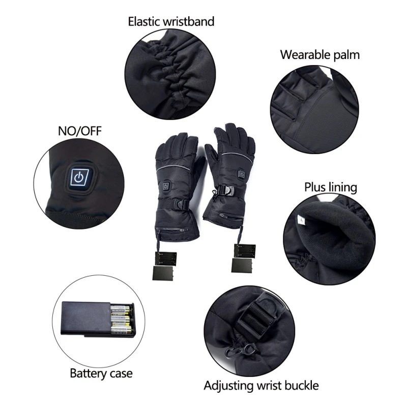 Winter Cycling Full Finger Gloves heated Adjustable Warm Waterproof Windproof Anti-slip Battery Pow