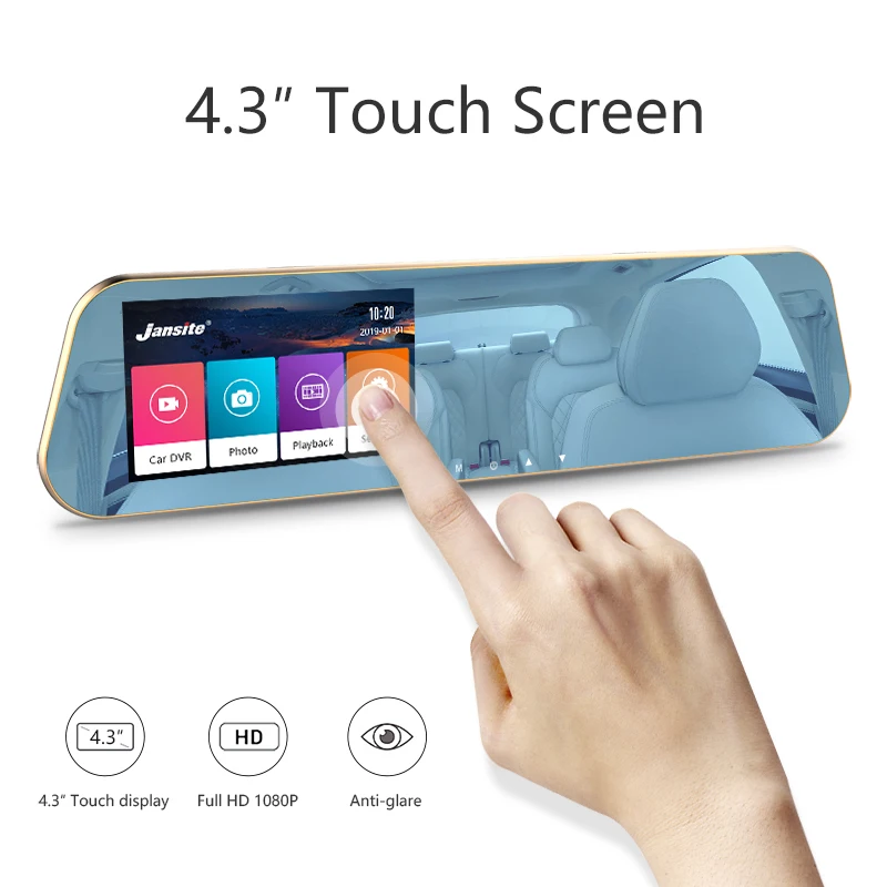 Jansite Touch Screen Car DVR Dual Lens Rear view camera Video Recorder Rear Camera Mirror With DVR