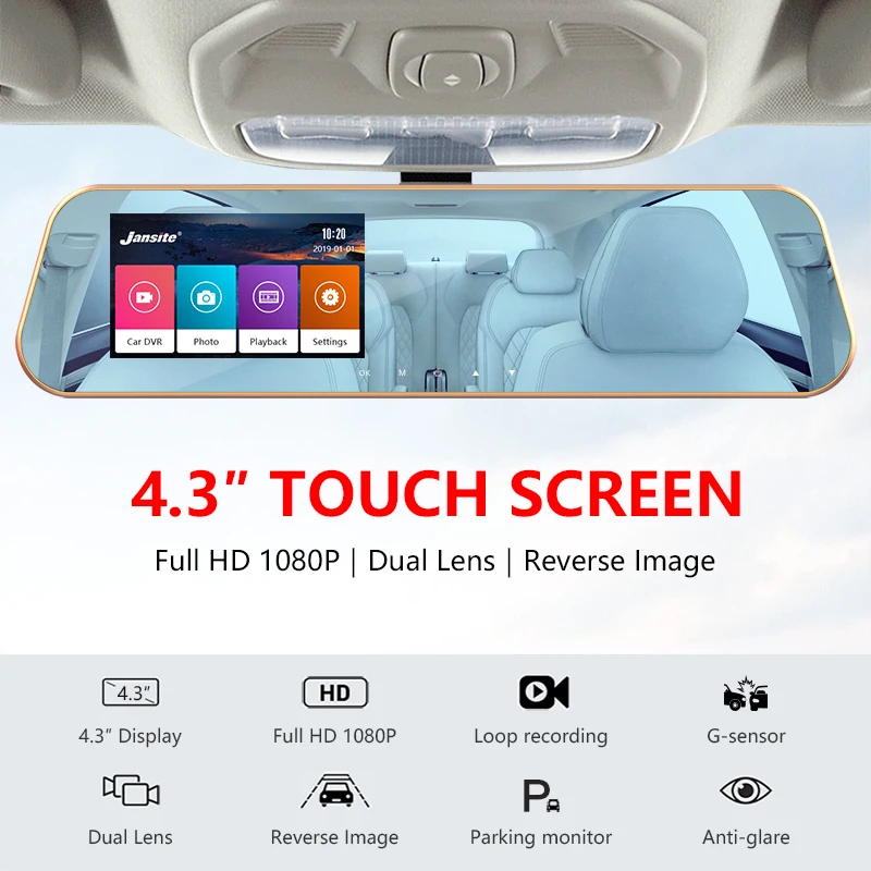 Best Quality Jansite 4.3-inch Car DVR Touch screen dash camera Dual Lens screen Auto Cameras Video Recorder Rear