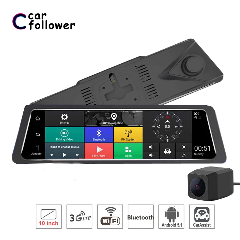 BEST 10 Inch 3G Android 5.1 Car DVR Touch Dash Cam Rearview Mirror Dash Camera Dual Lens GPS Navigation