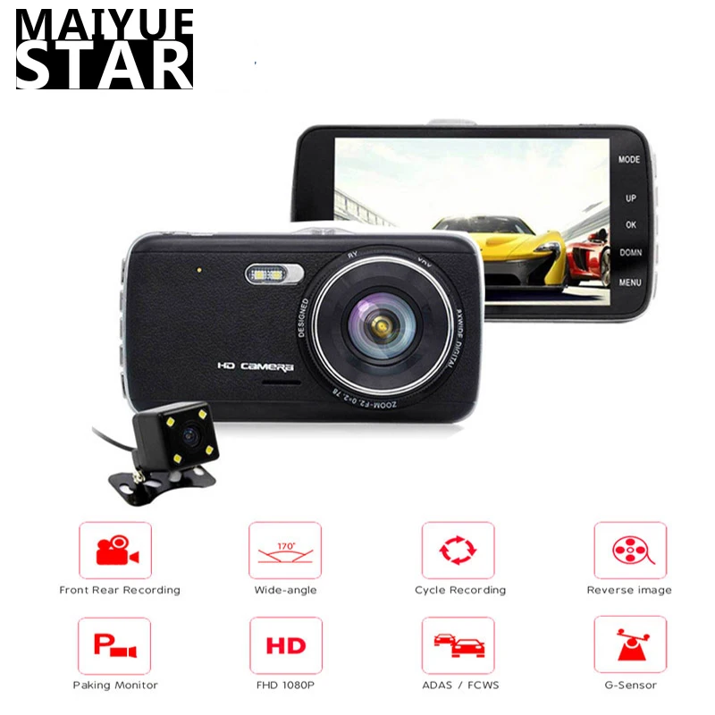 HOT Sale Mai Yue Xing 4.0 "Full HD 1296P Car DVR Camera IPS Screen Dual Lens Rearview Mirror ADAS Dash Camer
