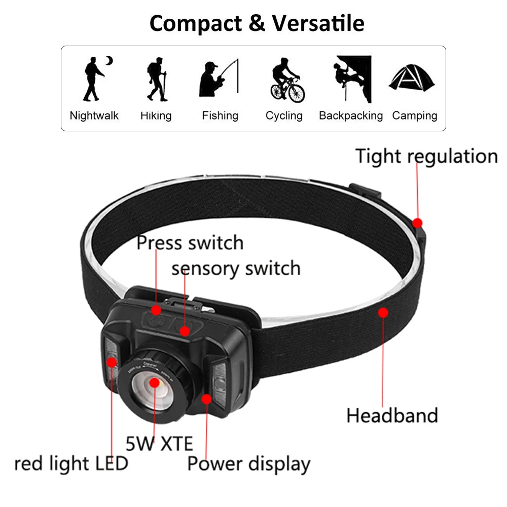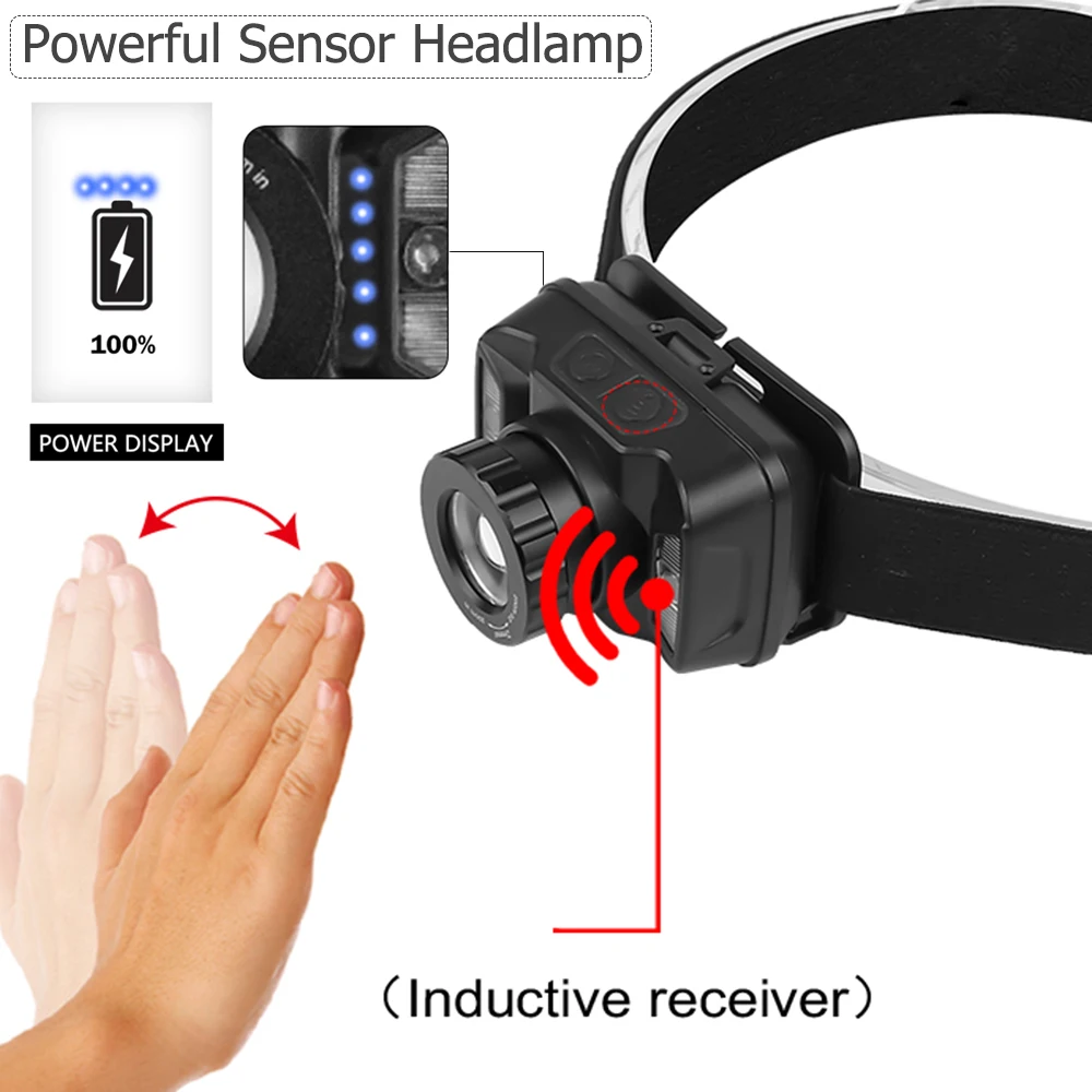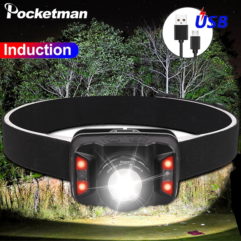 Powerful Headlamp Body Motion Sensor Headlight USB Rechargeable Head Light Zoom Head Front Light Wa