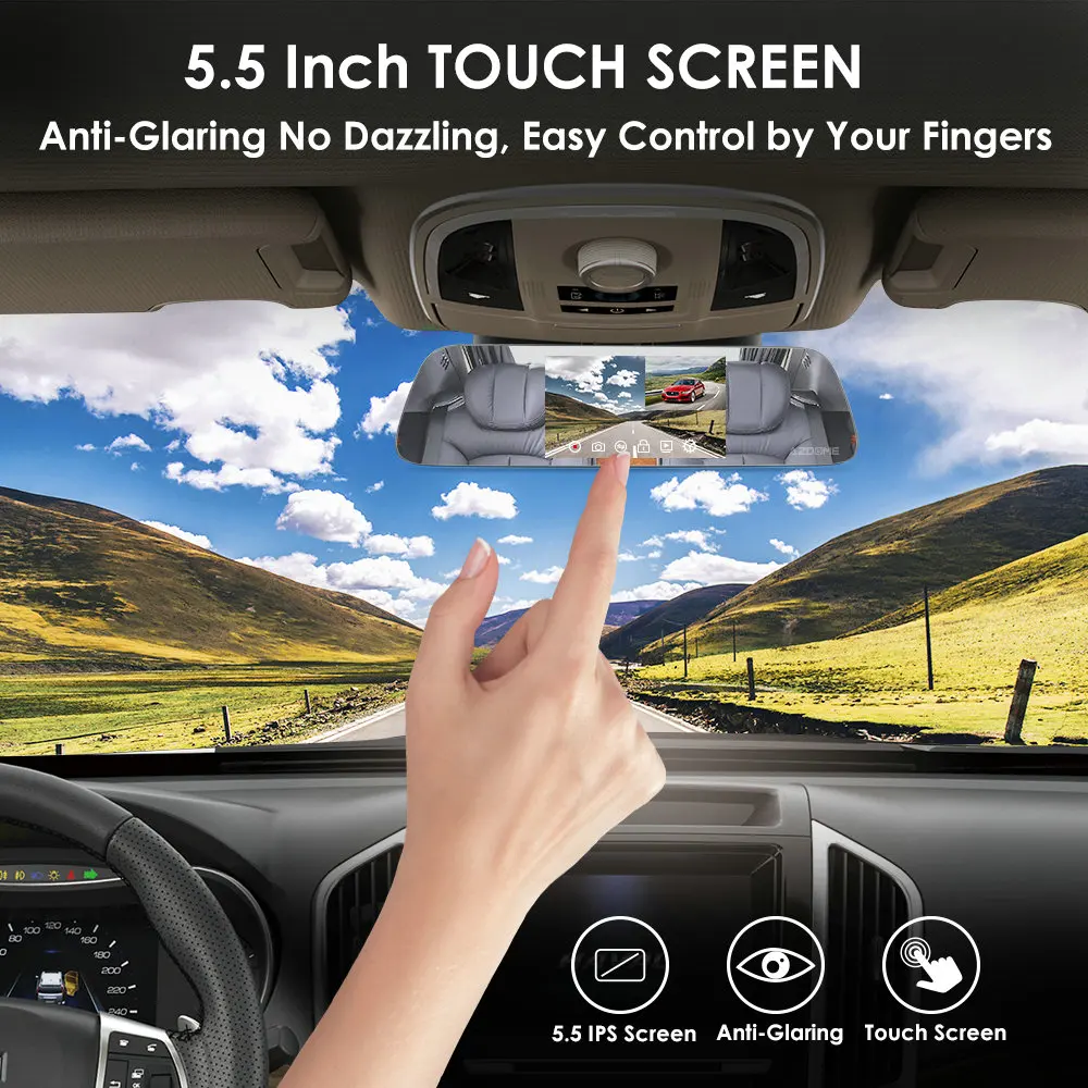 AZDOME PG01 Super Night Vision Mirror Video Recorde Dual Lens HD 1080P+720P Dash Cam 5.5" IPS Touch