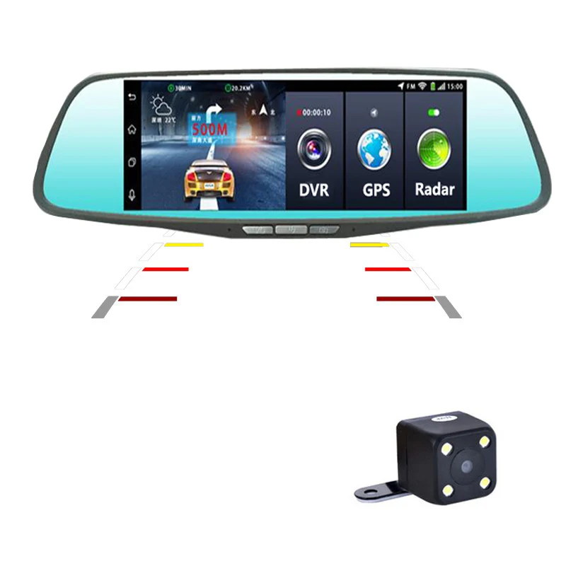 Dash Cam Car 8 Inch Touch Screen Android 5.1 Rearview Mirror Dual Lens GPS Navigation Wifi Bluetoot