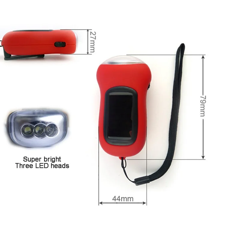 Portable Multifunction Outdoor Solar Powered 3 LED Flashlight Torch Hand Crank Dynamo